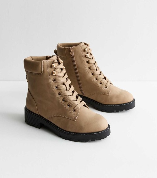 WIDE FIT CAMEL LEATHER LACE-UP BOOT