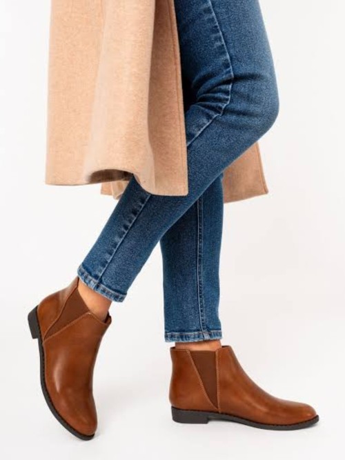 TAN BROWN CHELSEA ANKLE BOOT FEATURING A SLIP-ON DESIGN WITH ELASTIC SIDE PANELS AND A LOW BLOCK HEEL.