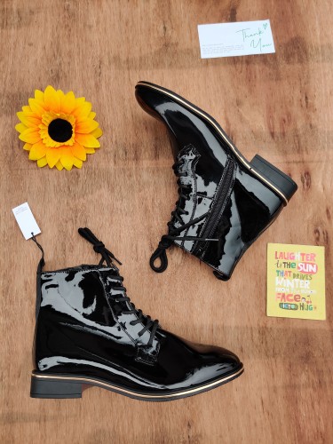 ANNA FIELD BLACK PATENT LACE-UP ANKLE BOOT