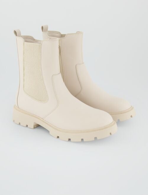 KAIB CREAM CHELSEA BOOT WITH FUNCTIONAL SIDE ZIPPER