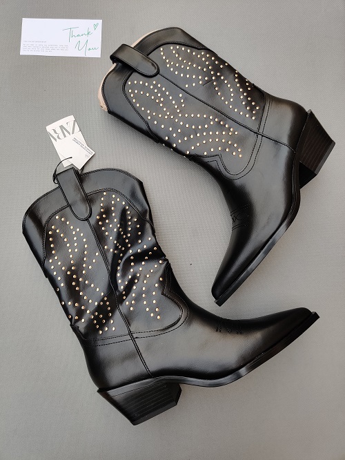 The Zara Cowboy Boot with Rivets adds a modern twist to Western classics. Featuring sleek leather, bold rivet detailing, and a timeless silhouette, it’s the perfect blend of rugged charm and contemporary style. Step out with confidence in this statement-making boot.